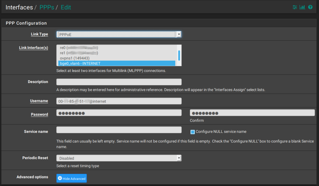 Thereafter it is always a good idea to go on the PPPs options and check if everything is set correctly, as such: