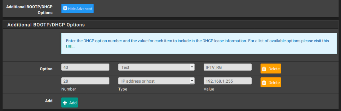 Disregard the DHCP system you might be using, I will describe what you need to add, in order to make you IPTV set-top box satisfied to get an IP address.