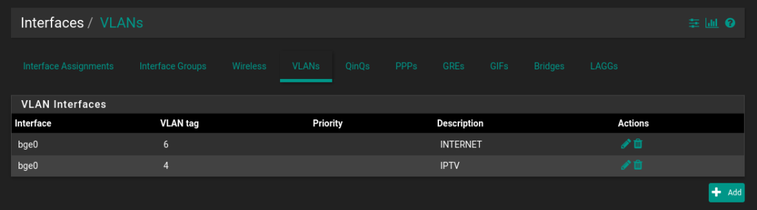 And select the interface that will be your WAN. It shoulw be some interface name like "em0" or "bge0" followed by the VLAN6 you have configured earlier, as such "bge0_vlan6".